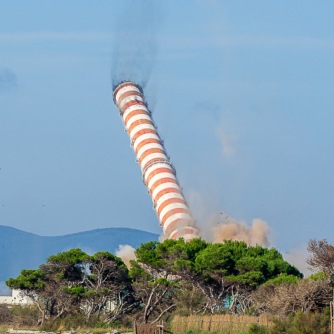 An extraordinary event marked the change in the skyline of the southern Tuscan coast. Indeed, at 10:09 AM on October 29, 2024, the two twin towers of the former Enel Tor del Sale power plant in Piombino, standing 195 meters tall, collapsed in a cloud of debris and dust, thanks to controlled explosions of microcharges placed at their base and in two intermediate points.
